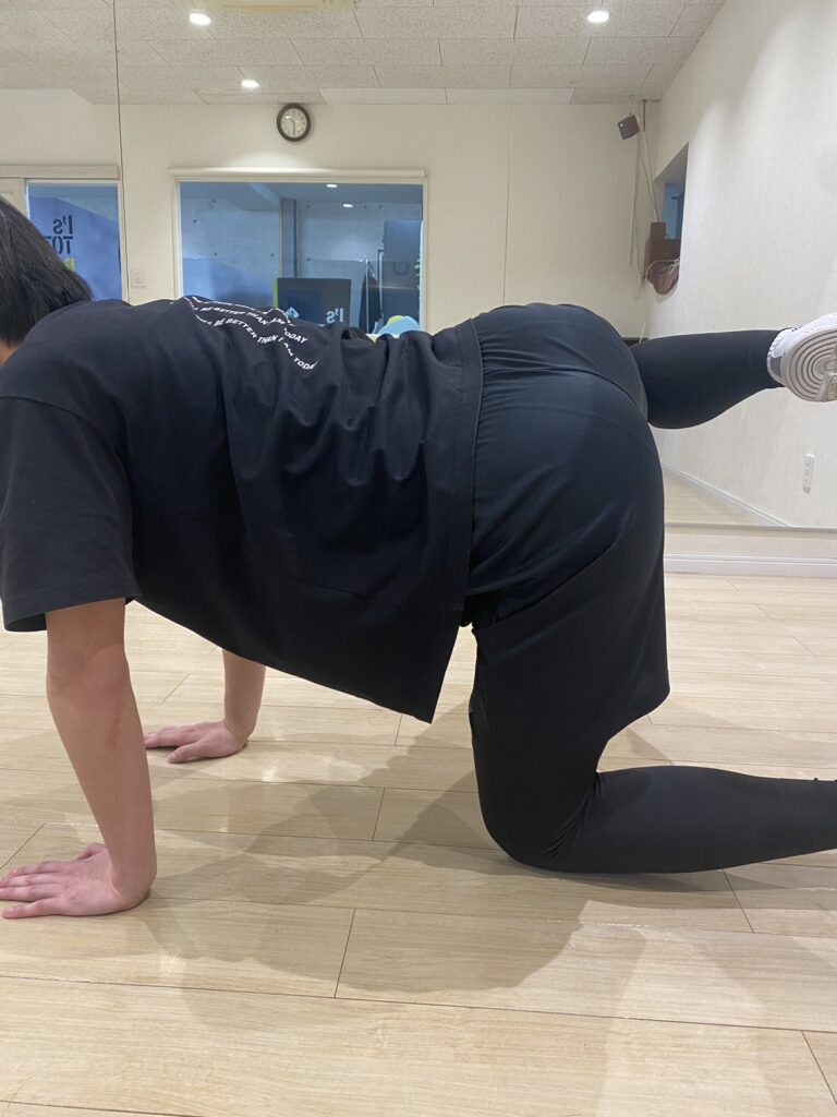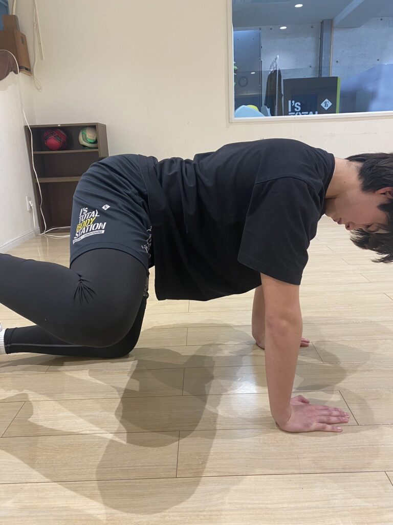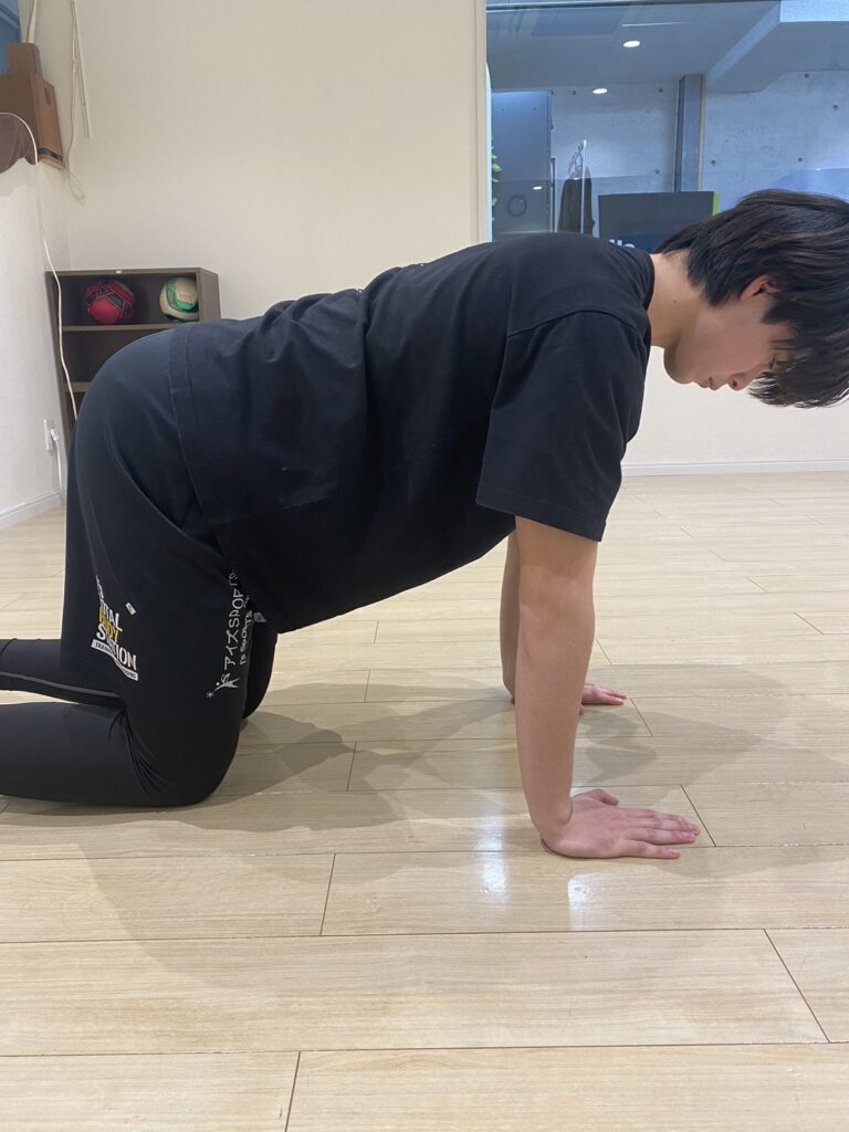 まず四つ這いの姿勢になります。